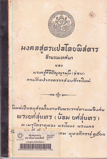 | รายการใกล้เคียง ผู้แต่ง [พระครูศิริปัญญามุนี (อ่อน)] หัวเรื่อง [มงคลสูตร]