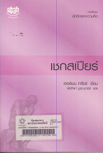 เชกสเปียร์ = Shakespeare : a very short introduction / เจอร์เมน เกรียร์, เขียน ; พันทิพา บูรณมาตร์, แปล