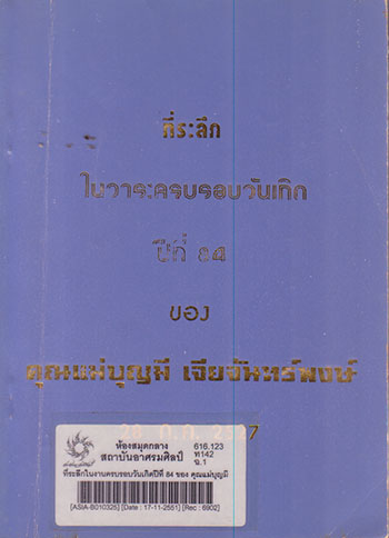 ที่ระลึกในงานครบรอบวันเกิดปีที่ 84 ของ คุณแม่บุญมี เจียจันทร์พงษ์ 28 ก.ค. 2527