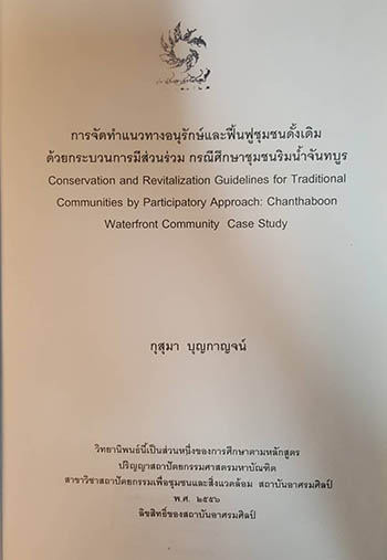 Conservation and Revitalization Guidelines for Traditional Communities by Paticipatory Approach : Chanthaboon Waterfront Community Case Study |